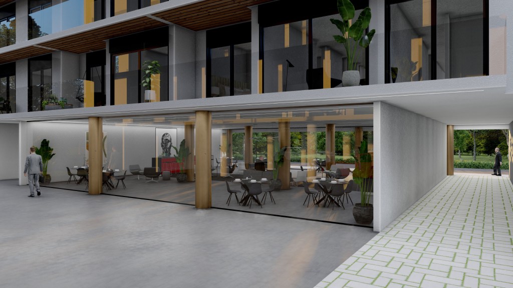 Los materiales utilizados, como el concreto expuesto y detalles en madera, crean un ambiente sofisticado, mientras que la vegetación circundante integra el proyecto con su entorno natural, ideal para quienes buscan diseño contemporáneo en un ambiente tranquilo.