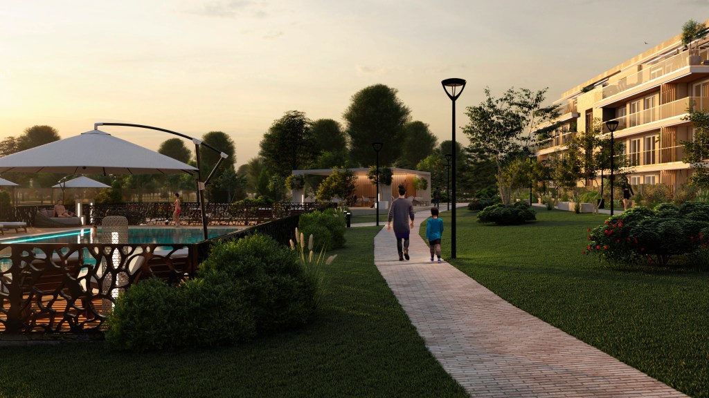 Exclusivas zonas comunes con amplias zonas verdes, 2 piscinas, 2 pistas de pádel, club social, espacio biosaludable, parque infantil y con acceso vigilado las 24 horas.