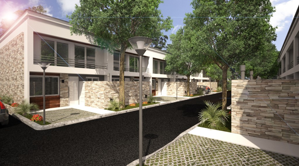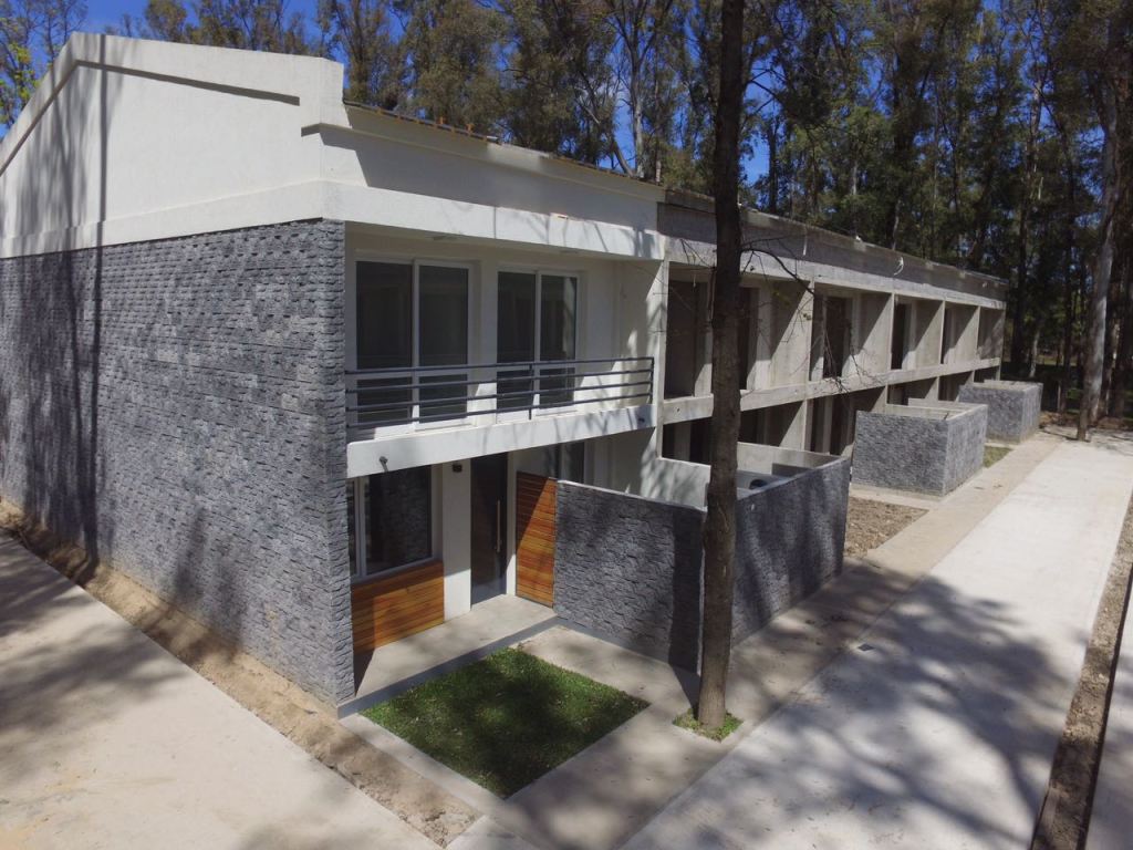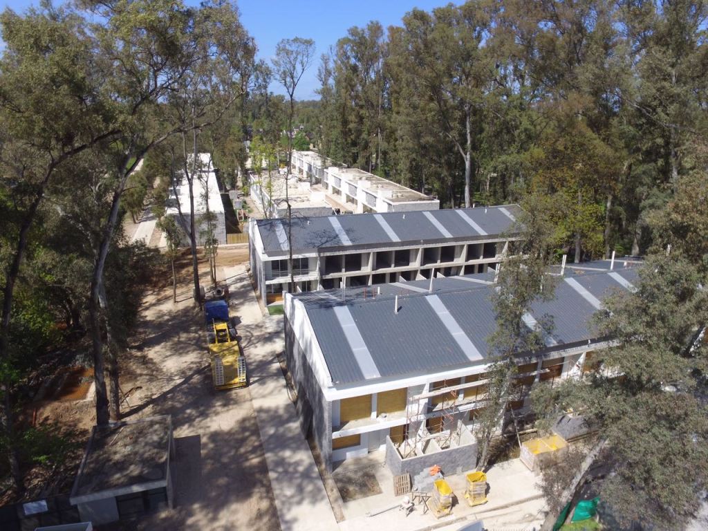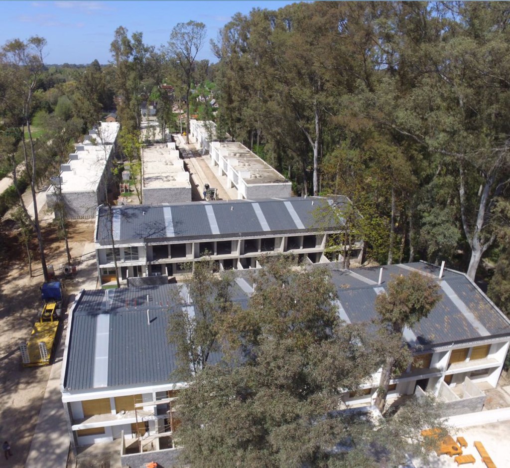 La obra ubicada en Ruta 8, Pilar, Buenos Aires, se compone de dos áreas claramente definidas: una con 24 dúplex y otra con 40 unidades en el área del bosque.